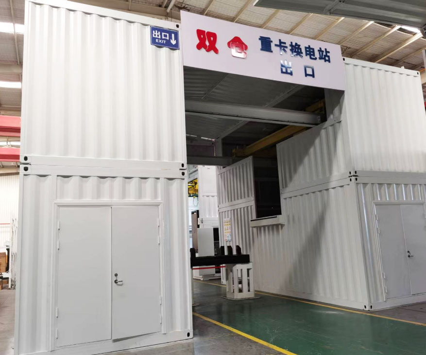 双伸重卡换电系统采用集装箱模块化设计,工厂预先组装,现场安装调试时间短。