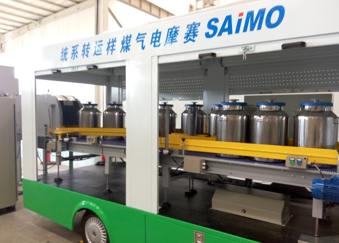 样品罐自动上罐结束后,车门自动关闭,系统提示司机可以开车,到达制样区后,司机按照指定位置停车后,车门自动打开,先启动空罐装车程序,由于样品转送车具有两条样品罐储存区,系统先将制样区存储的空罐装到转运车的空罐区,然后启动煤样罐卸罐程序,系统自动将样品罐送到指定样品罐缓存区,同时扫描样品罐信息,并根据系统要求,自动将样品经过解锁后提升倒样,倒样提升装置装有称重检测装置,自动检测样品罐是否倒干净,空罐储存在缓存区,完成样品的自动送样和卸样过程。