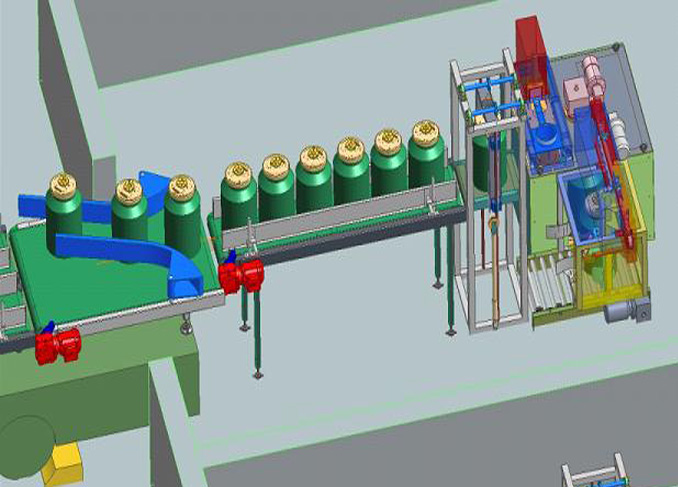 如上图所示,在采样处,每次从收集装置内取出的料桶被暂时存放在储桶输送机内等待转运;在制样卸料处,每次转运的料桶也被暂时存放在储桶输送机内等待卸料。