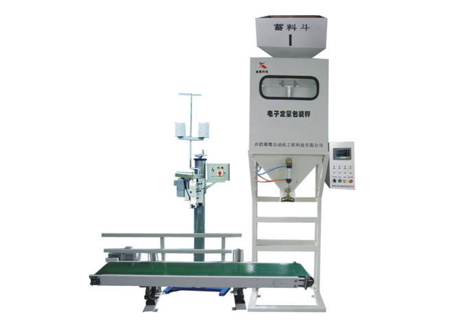 该系列定量包装秤机组专为各类颗粒物料及流动性较好,粉尘小的细小颗粒物料定量包装而设计,采用气动弧形门或振动方式分级给料。包装秤料仓内的物料通过传感器控制气动弧形门或振动给料器,分级给料到称重斗或包装袋内。当称重斗或包装袋内物料充填到设定的重量后,给料机构停止给料。其物料按目标值填充到包装袋后,夹袋器自动打开,料袋通过输送带送走,由人工辅助缝包(封口)。