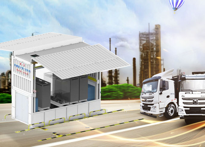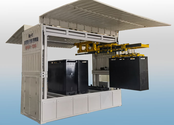 双伸重卡换电系统采用集装箱模块化设计,工厂预先组装,现场安装调试时间短;