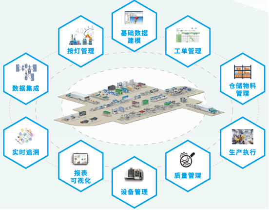 ►制造运营管理系统(MOM):生产指挥中枢,涵盖数据集成、实时监测、工单管理等核心功能,支持多行业定制,实现生产全流程闭环管理,达成 “可控、协同、精益、可视、可追、智能” 运营目标。