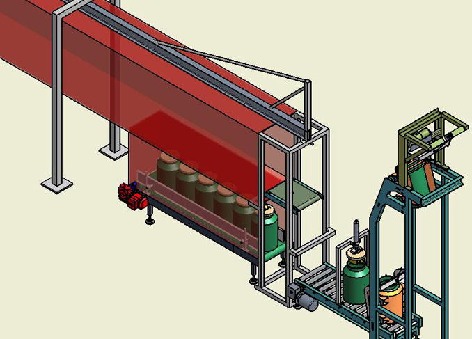 如上图所示,在采样处,每次从收集装置内取出的料桶被暂时存放在储桶输送机内等待转运;在制样卸料处,每次转运的料桶也被暂时存放在储桶输送机内等待卸料。
