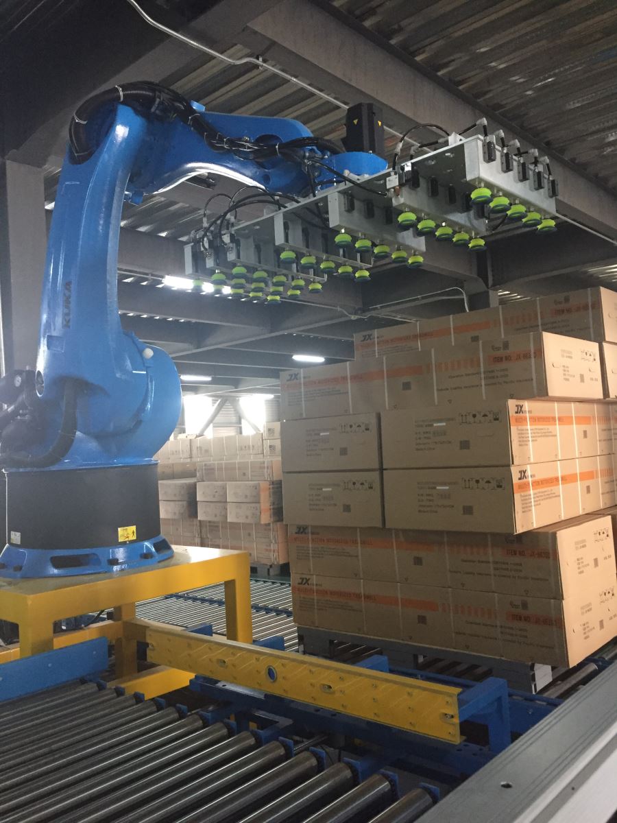 码垛系统具有极高的精度、抓放物品精准,且动作响应速度极快。针对不同批次产品实现不同码垛模式的快速切换,并可实现1台机器人对多条生产线的码垛作业。