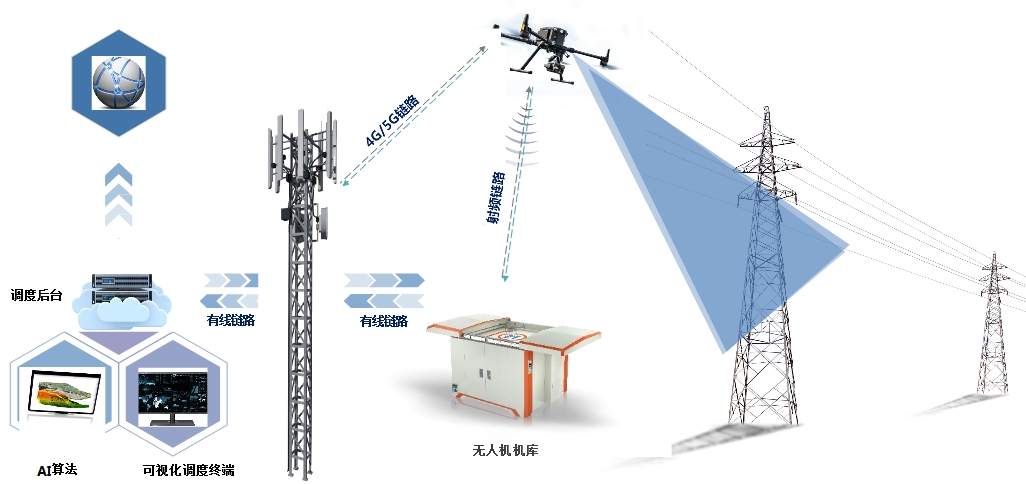 充换电一体机库沿输电线路部署,自动放飞无人机巡检