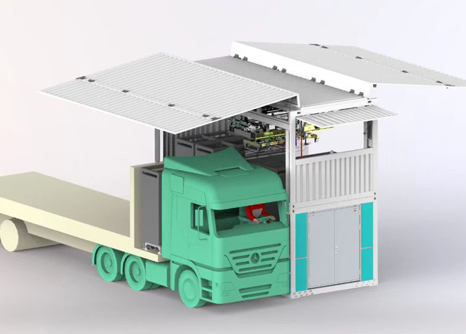 双伸重卡换电系统采用集装箱模块化设计,工厂预先组装,现场安装调试时间短;